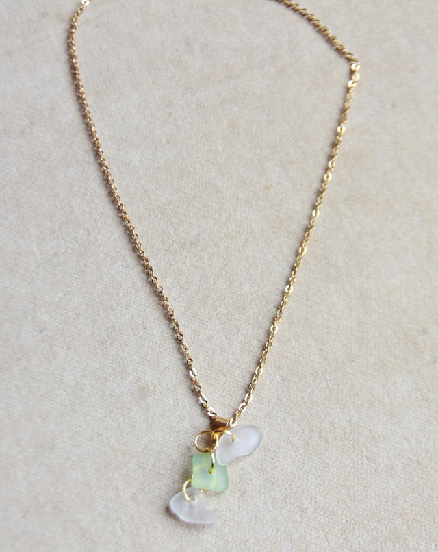 Collana Sea Glass colore bianco e verde kelly e titanio.